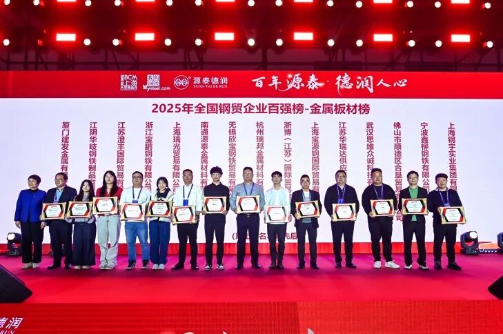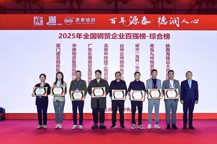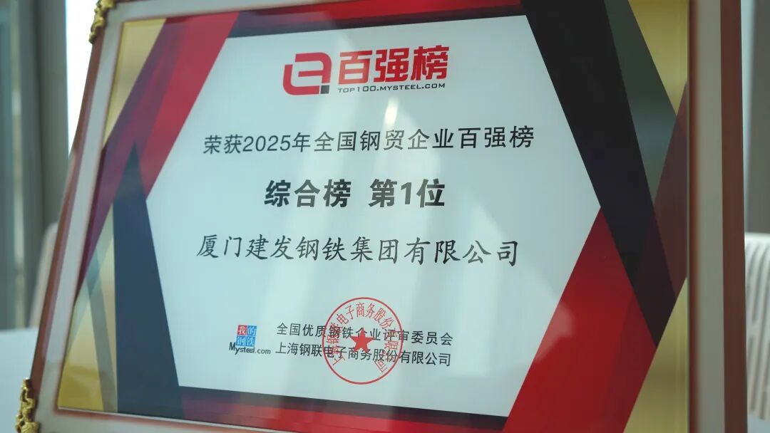 12月19日至21日,2026钢铁市场展望暨“我的钢铁”年会在上海举行。在同期举办的“2026大宗商品颁奖庆典”上,厦门建发钢铁集团有限公司(下称“建发钢铁集团”)荣获2025年全国钢贸企业百强榜“综合榜第一位”,旗下建发金属荣获“金属板材榜第一位”,彰显了建发钢铁集团在钢铁供应链运营、资源整合与综合服务能力方面的领先优势。